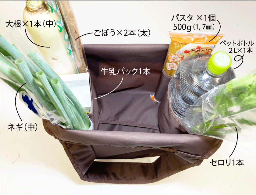 ①ホルダー付マイバッグでタテ長の物をタテに収納